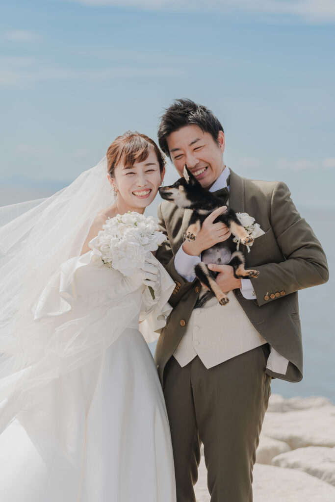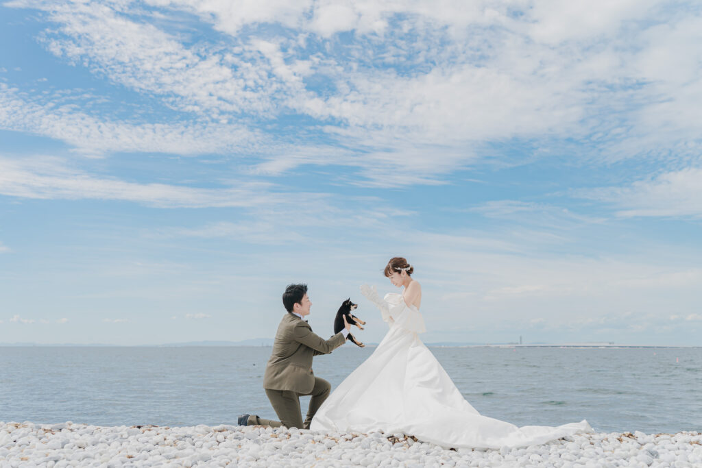 愛犬も大切な家族の一員です。マーブルビーチでの撮影はペットとの撮影も可能です。