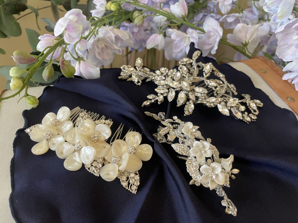 岐阜店よりウェディング小物、ヘッドアクセサリーのご紹介です。ドレスアンドスタイルス岐阜店では、様々なシーンで活躍するアイテムを豊富に取り揃えています。シニヨンなどクラシカルなヘアスタイルから、ウェービーなダウンスタイルまで、どんなヘアスタイルも華やかにしてくれます。
