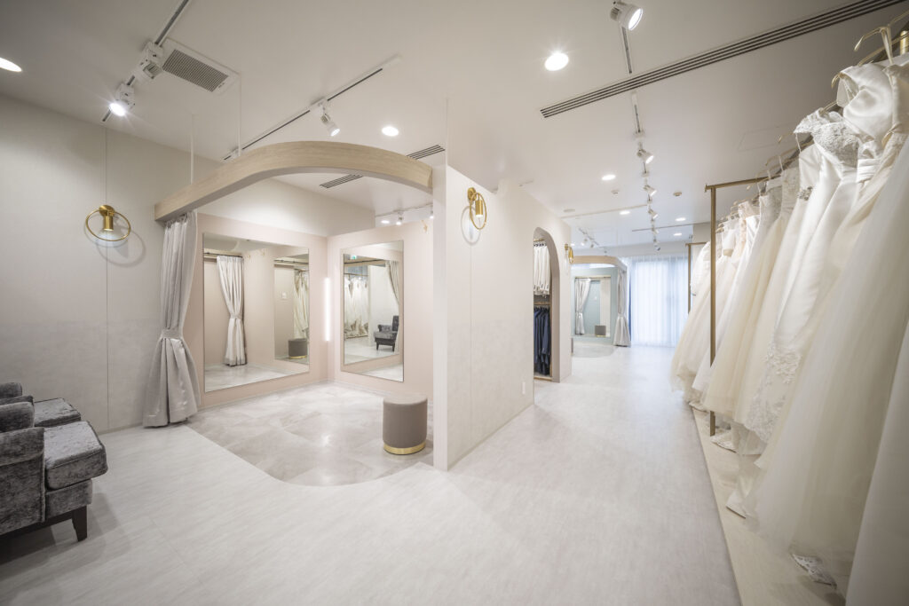新店舗では、新作ドレスなどこれまで以上に充実したラインナップをご用意し、皆さまをお迎えいたします。