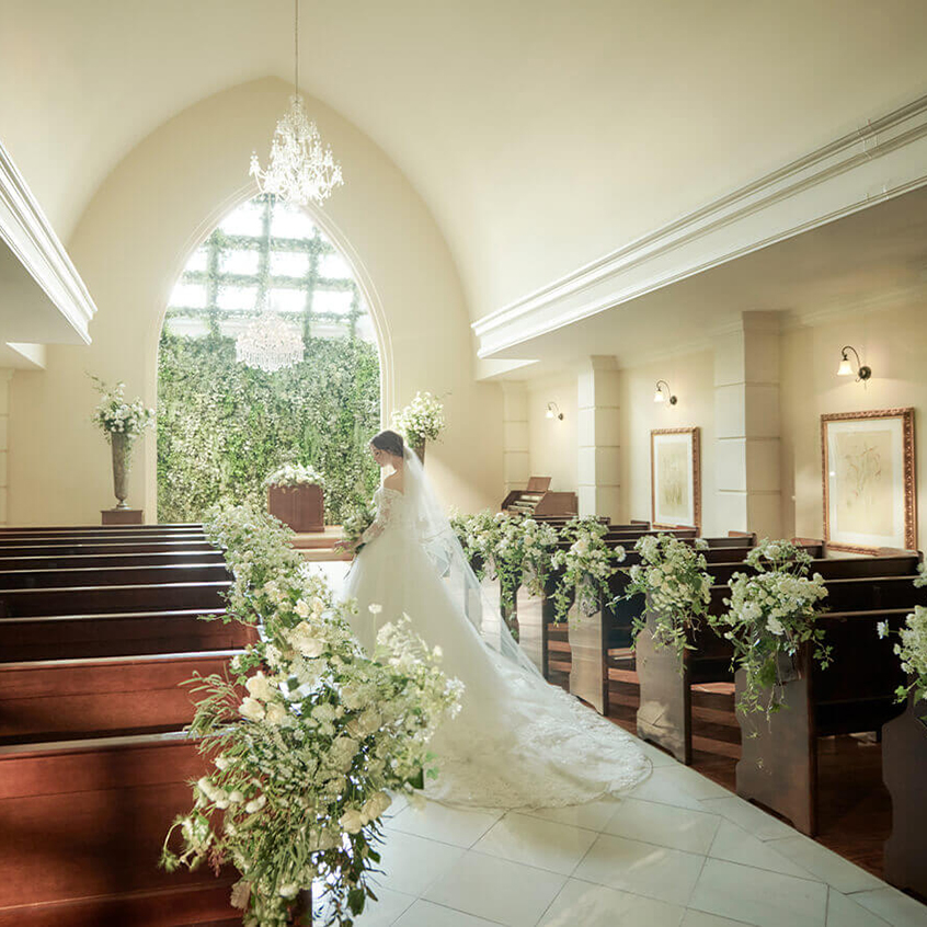 緑の邸宅に包まれた結婚式場ル・シャン・ド・ククでの開放的な空間で、衣裳+美容込みのお得なフォトプラン♪ チャペル撮影での大変お得なプランです