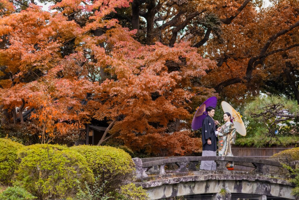 新年を迎えるにあたり、ご入籍の報告や結婚の挨拶を兼ねた年賀状やお知らせに、お二人の幸せいっぱいの和装フォトはいかがですか?季節によって変わる色や表情とともに、今しか残せない写真を。
